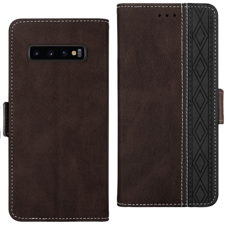 Caja de Teléfono de Cuero Samsung Galaxy S10 + Costura Rfid Magnético (Café)