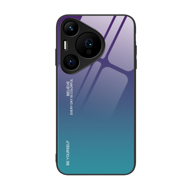 Caja de Teléfono de Vidrio para Huawei Pura 70 Pro Color Degradado (Verde Cian)