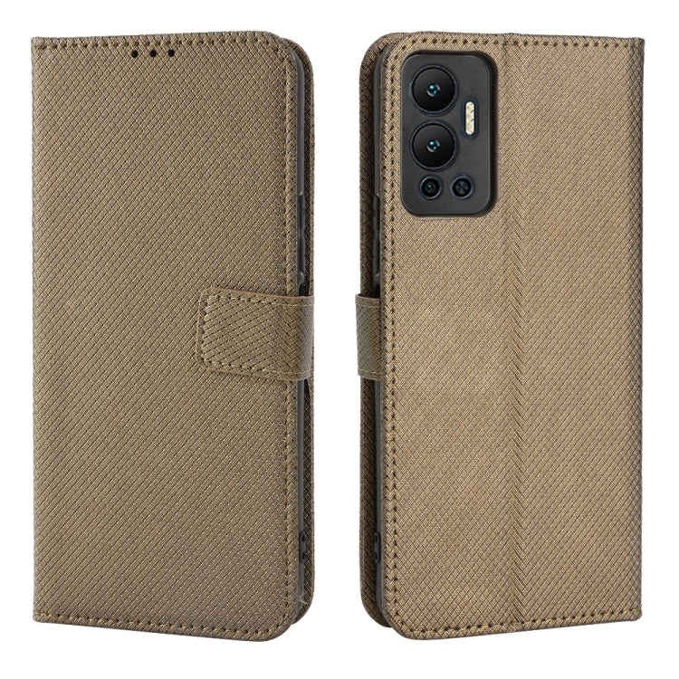 Caja de Teléfono para Infinix Hot 12 de Cuero con Textura de Diamante (Marrón)