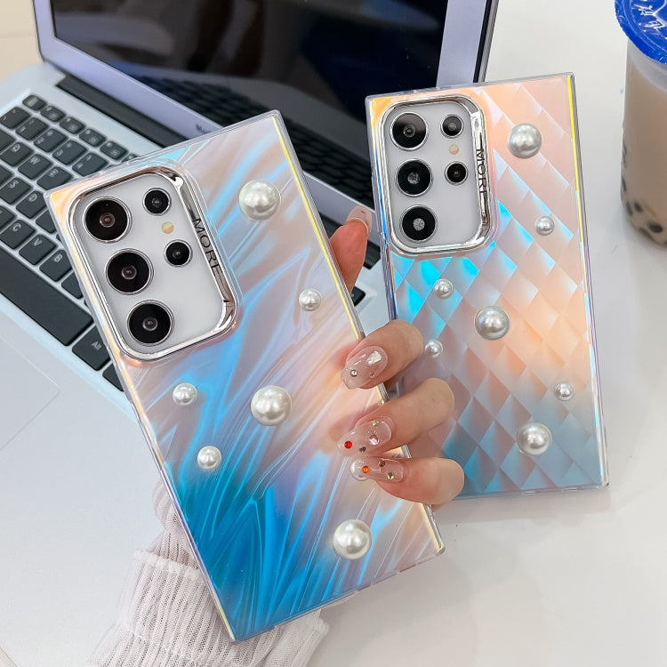 Caja de Teléfono TPU Samsung Galaxy S24 Ultra 5G Textura Láser Perla Galvanizada (Cuadros)