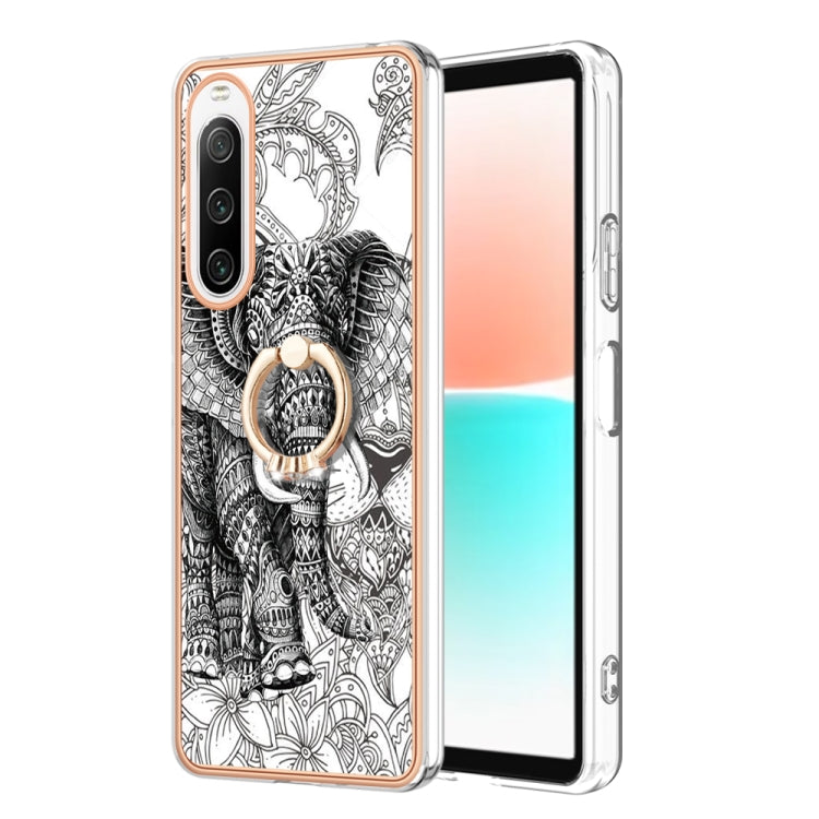 Caja para Sony Xperia 10 Iv Imd Doble Cara Galvanizada con Soporte para Anillo (Totem Elephant)
