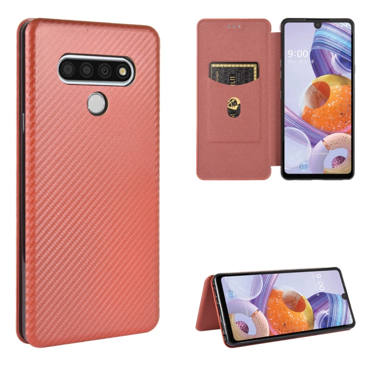 Carcasa para LG K31 Cuero con Tapa Magnética Horizontal Textura Fibra de Carbono TPU + PC + PU (Negro)