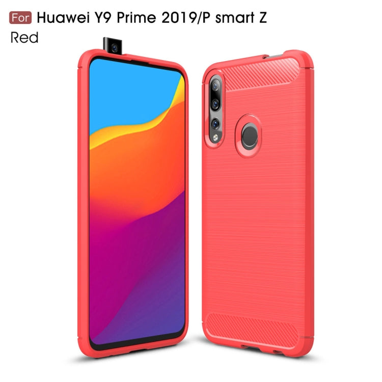 Carcasa TPU Fibra de Carbono con Textura Cepillada para Huawei Y9 Prime 2019 / P Smart Z (Rojo)