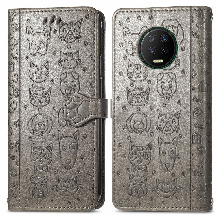 Estuche Cuero Horizontal para Infinix Note 7 con Soporte, Ranuras y Cordón de Gato y Perro (Gris)