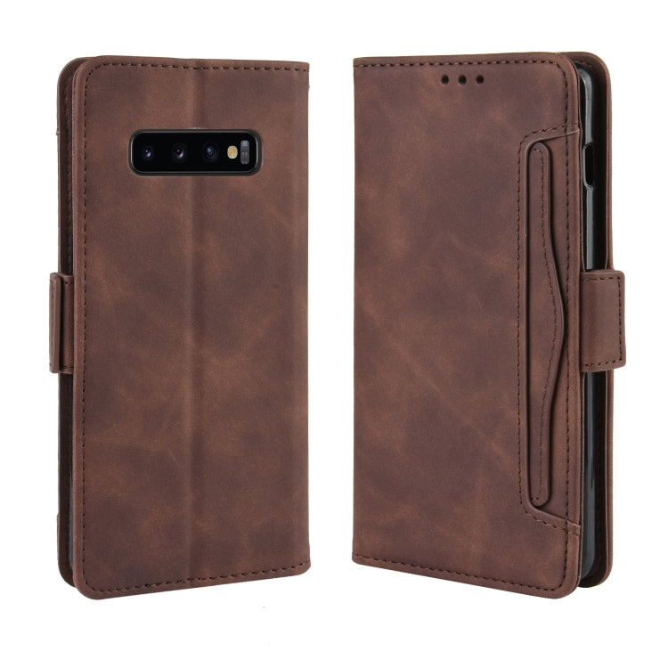 Estuche de Cuero Becerro Skin Feel Estilo Billetera para Galaxy S10+ con Ranura para Tarjeta (Marrón)