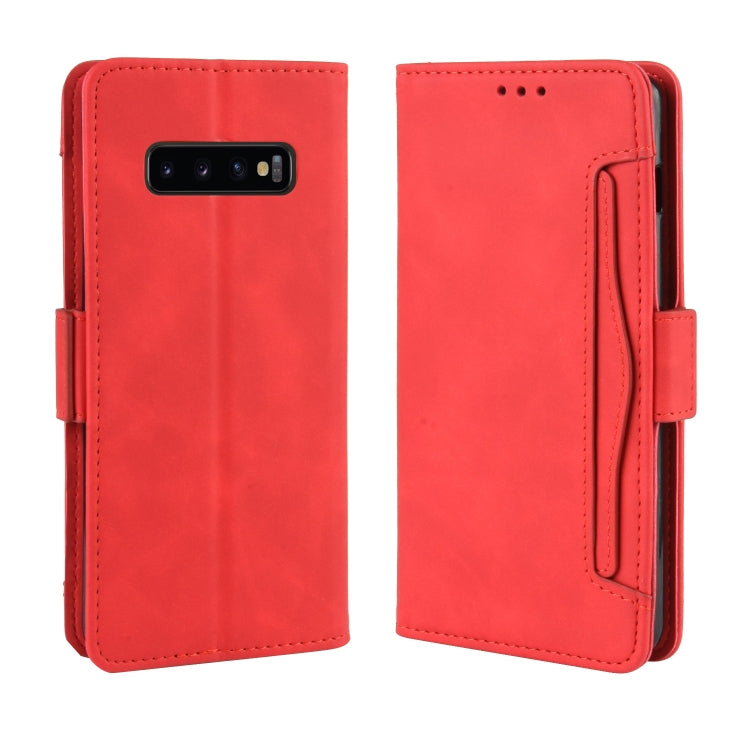 Estuche de Cuero Becerro Skin Feel Estilo Billetera para Galaxy S10 + con Ranura para Tarjeta (Rojo)