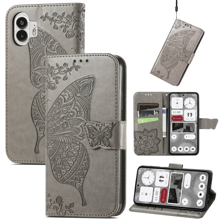 Estuche de Cuero For Nothing Phone 2 con Tapa Horizontal en Relieve y Flor de Mariposa (Gris)