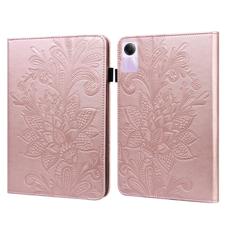 Para Xiaomi Redmi Pad Se Funda para Tableta de Pu con Patrón de Estampado de Flores de Encaje (Dorado)