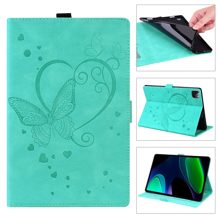 Para Xiaomi Pad 6 / Pad 6 Pro Love Butterfly Funda para Tableta de Cuero En Relieve (Verde Menta)