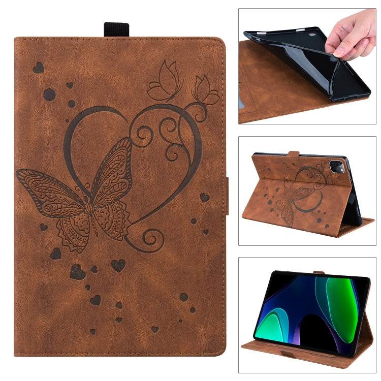 Para Xiaomi Pad 6 / Pad 6 Pro Love Butterfly Funda para Tableta de Cuero En Relieve (Marrón)