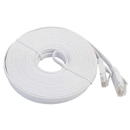 Cable LAN de Red Ethernet Plano Ultrafino Cat6 de 10 Metros con Conector RJ45 (Blanco)