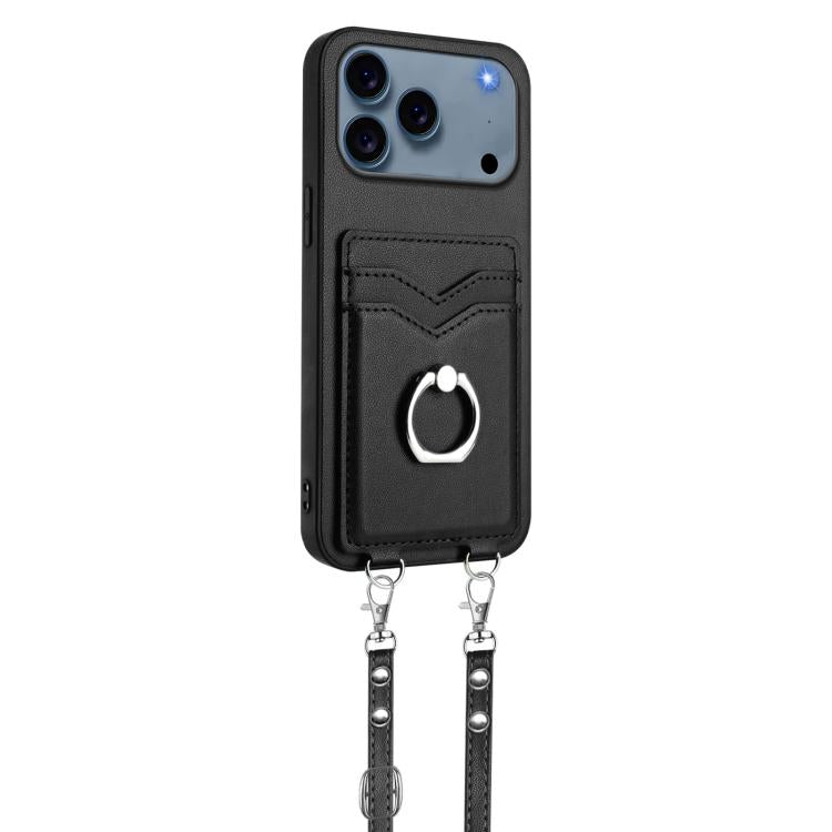 Funda con anilla para tarjetas y cordón cruzado para iPhone 17 Pro Max R20 (negra)