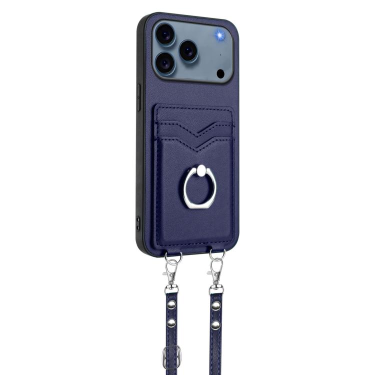 Funda con anilla para tarjetas y correa cruzada para iPhone 17 Pro Max R20 (azul)