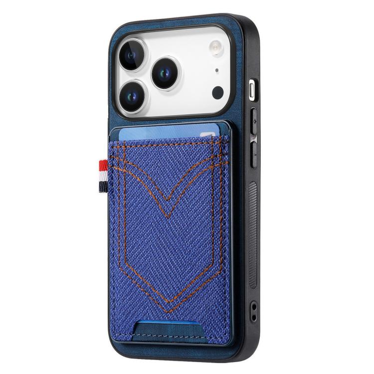 Funda de piel con textura vaquera para iPhone 17 Pro Max con ranura para tarjetas (azul)