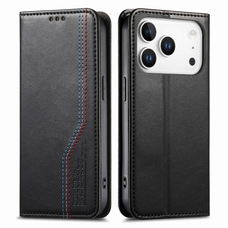 Funda Neo Splicing de cuero con doble hebilla magnética para iPhone 17 Pro Max (negra)