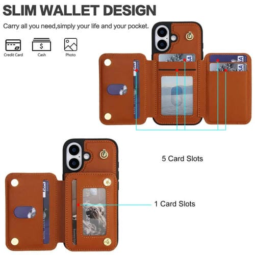 Funda de cuero tipo billetera con cremallera y siete ranuras para tarjetas para iPhone 17 (marrón)