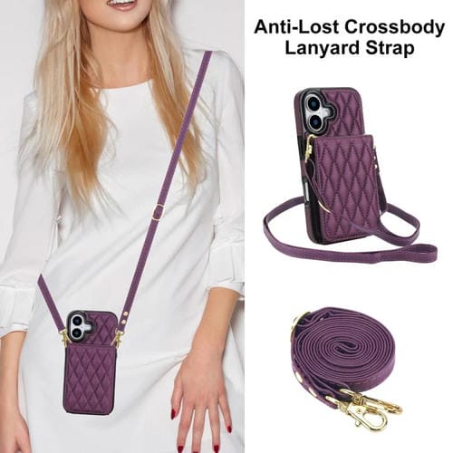 Funda AwQuer con cierre cruzado y parte trasera de cuero romboidal para iPhone 17 (morado oscuro)