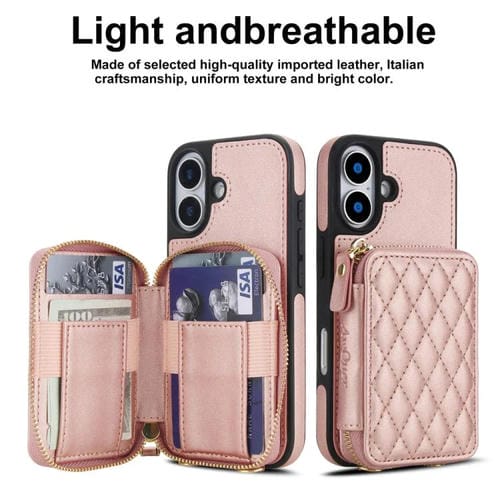 Funda AwQuer con cierre cruzado y parte trasera de cuero romboidal para iPhone 17 (oro rosa)