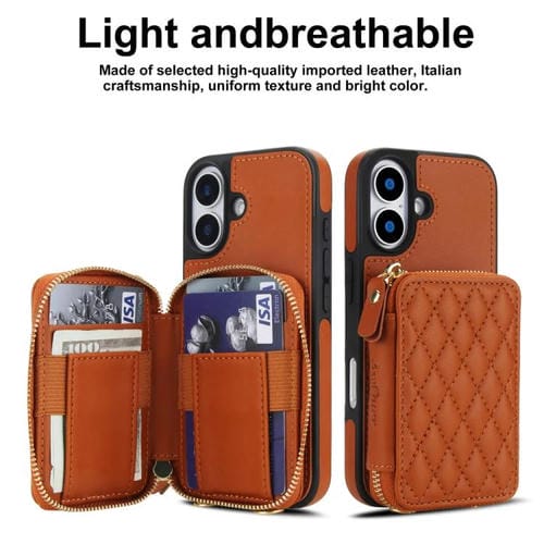 Funda AwQuer con cierre cruzado y parte trasera de cuero rombal para iPhone 17 (marrón)