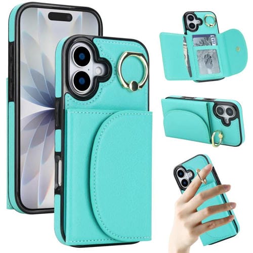 Funda para iPhone 17 con tarjetero y anillo, tacto suave (verde)