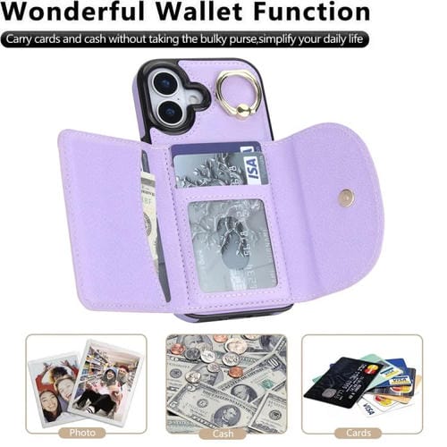 Funda para iPhone 17 con tarjetero y anillo, tacto suave (morado)
