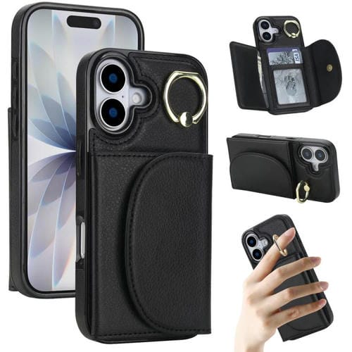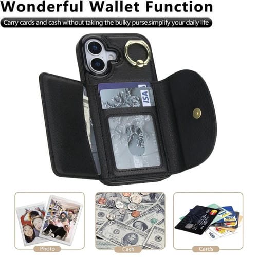 Funda para iPhone 17 con tarjetero y anillo, con tacto de piel (negra)