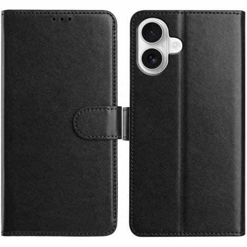 Funda de cuero con ranura para tarjeta y hebilla magnética para iPhone 17 (negra)
