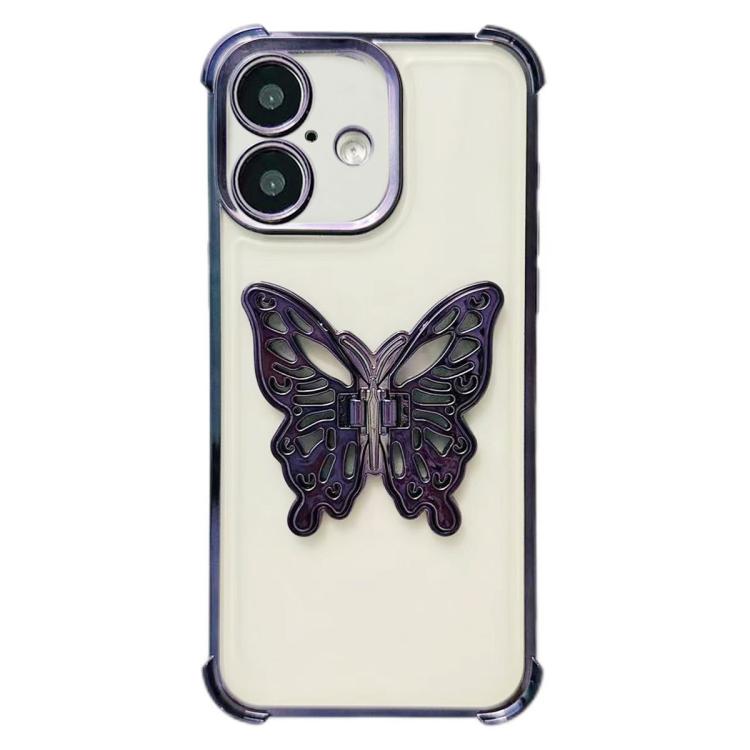 Funda de TPU con diseño de mariposa 3D galvanizada para iPhone 17 (morada)