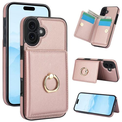 Funda con anillo para tarjeta antirrobo RFID para iPhone 17 (oro rosa)