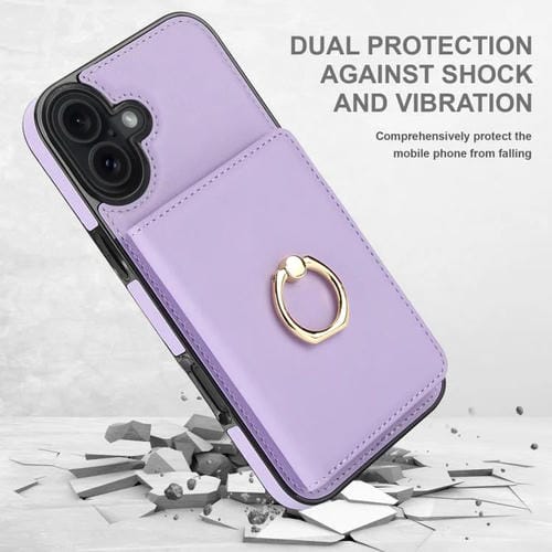 Funda antirrobo RFID para iPhone 17 con anillo para tarjetas (morado)