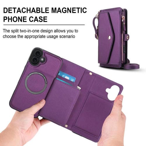 Funda de cuero desmontable con cordón para iPhone 17 (morado oscuro)
