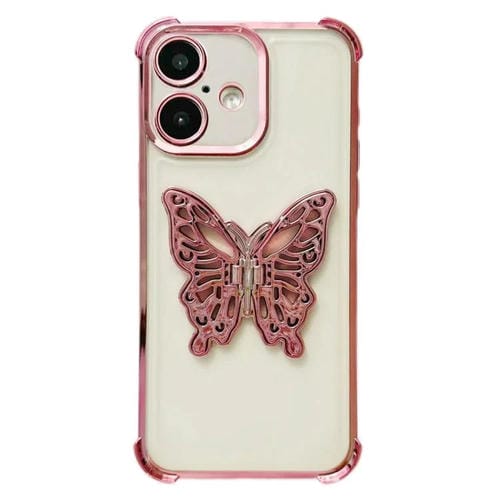 Funda de TPU con diseño de mariposa 3D galvanizada para iPhone 17 (rosa)