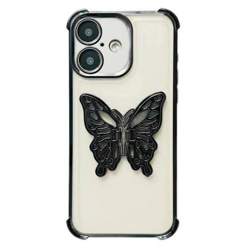 Funda de TPU con diseño de mariposa 3D galvanizada para iPhone 17 (negra)