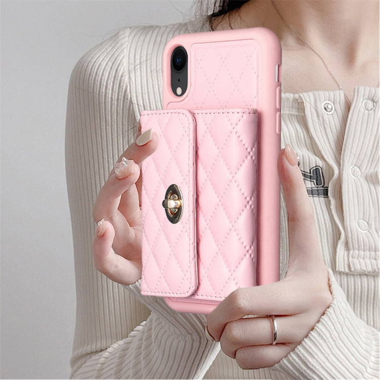 Caja de teléfono de cuero Rombal para iPhone Xr con hebilla de metal horizontal (Rosa)
