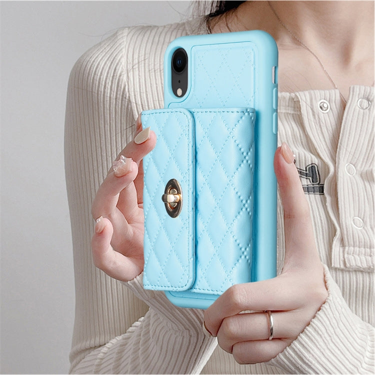 Caja de teléfono de cuero Rombal para iPhone Xr con hebilla de metal horizontal (Azul)