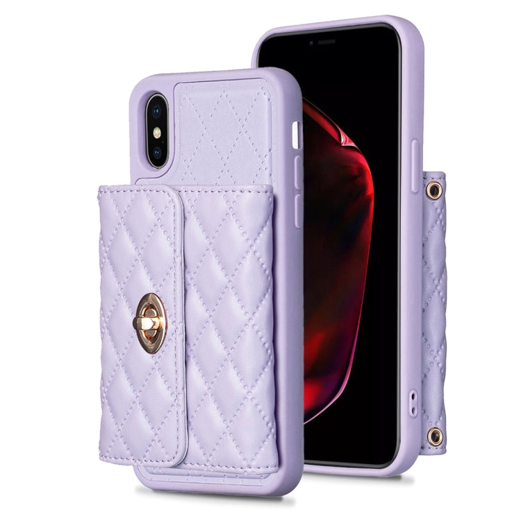Caja de Teléfono de Cuero Rombal para iPhone X / Xs con Hebilla de Metal Horizontal (Púrpura)