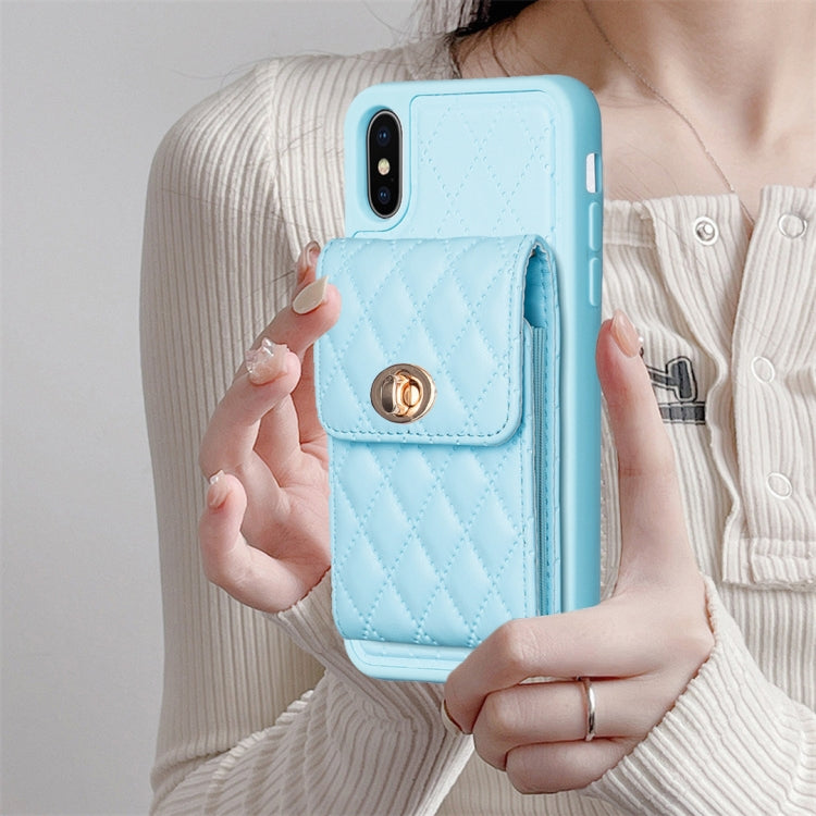 Caja de Teléfono de Cuero Rómbica Billetera con Hebilla Metal para iPhone X Xs (Azul)