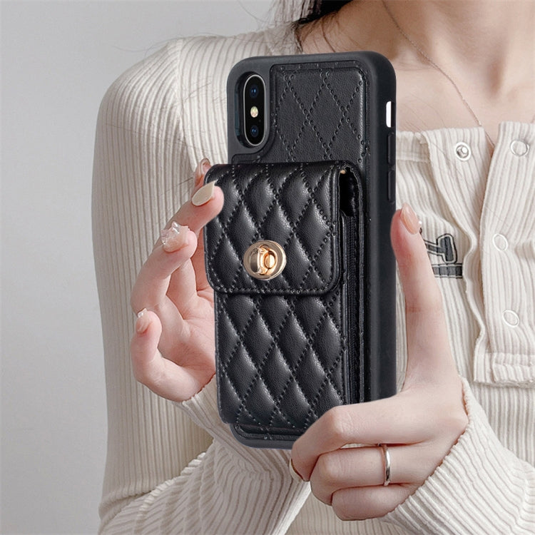 Caja de Teléfono de Cuero Rómbica Billetera con Hebilla Metal Vertical para iPhone X / Xs (Negro)