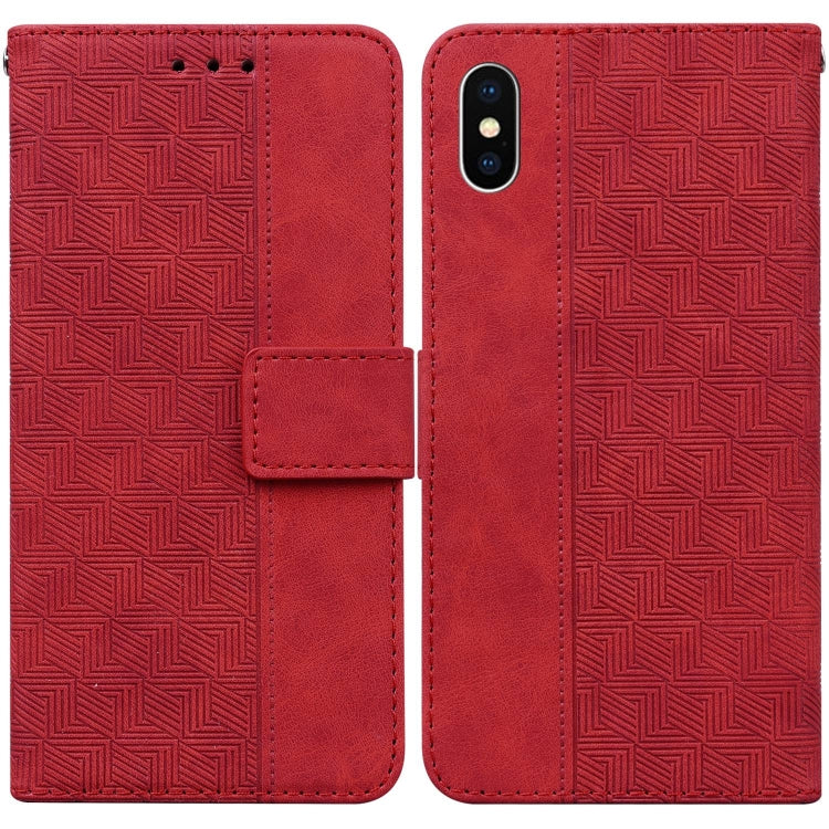 Estuche de teléfono para iPhone Xs Max cuero en relieve geométrico (Rojo)