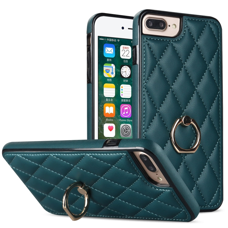 Estuche de teléfono para iPhone 7 Plus y 8 Plus Cuero PU Rómbico con soporte para anillo (Verde)