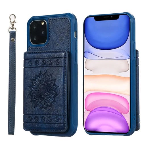 Estuche para iPhone 11 Pro PU + TPU con Soporte Ranuras Tarjetas Marco Fotos y Cordón (Azul)