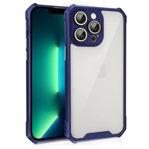 Estuche para iPhone 13 Pro Max Acrílico a Prueba de Golpes con Película de Vidrio para Lentes (Azul)