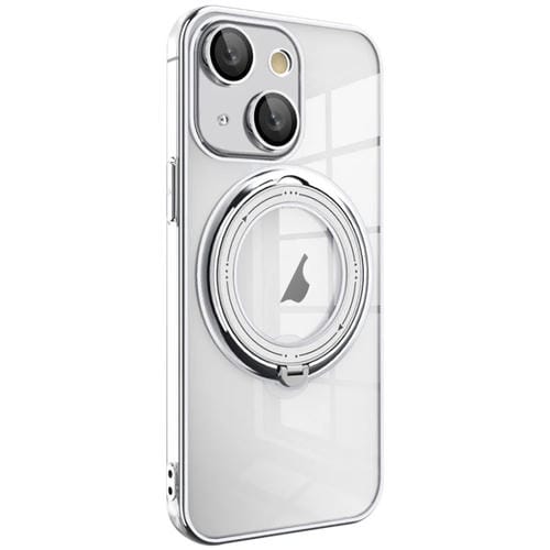 Estuche para iPhone 15 Galvanoplastia Magsafe Soporte Rotación 360 Grados a Prueba de Golpes (Plata)