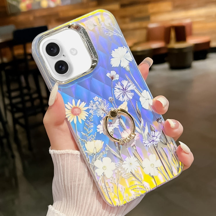 Caja del Teléfono TPU para iPhone 16 Plus con Soporte de Anillo y Flor Láser (Cosmos Flower Ah7)