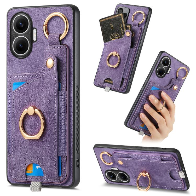 Funda para Redmi Turbo 4 Pro con diseño retro de piel sintética, con anillo y asa para colgar (morado)