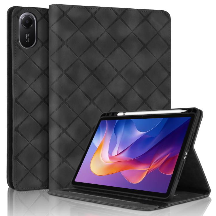 Funda de cuero con relieve de rombos para Xiaomi Redmi Pad 2 (negra)