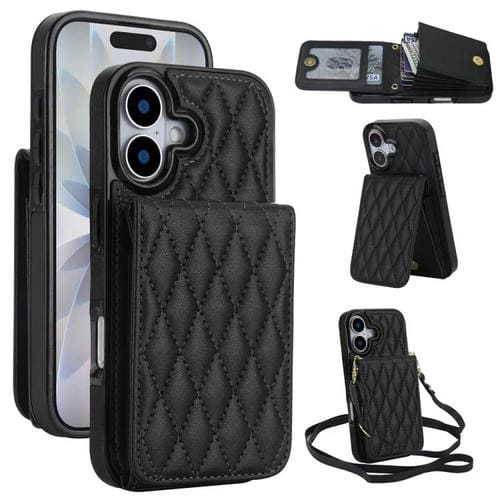 Funda AwQuer con cierre cruzado y parte trasera de cuero romboidal para iPhone 17 (morado)