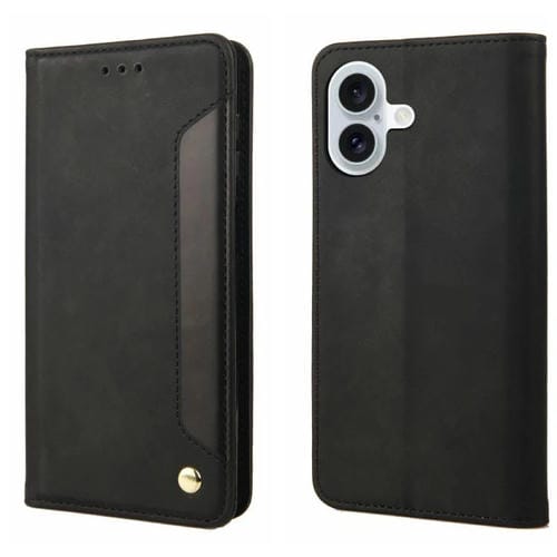 Funda de cuero con ranura para tarjeta y hebilla magnética para iPhone 17 (negra)