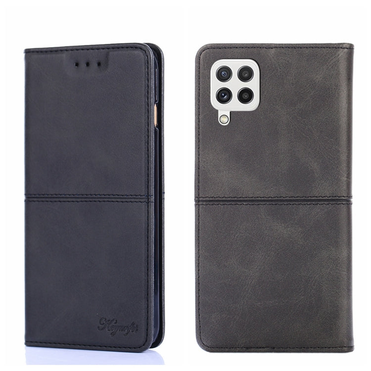 Para Samsung Galaxy A22 5G Textura de vaca Magnetic Horizontal Flip Cuero Case (negro)