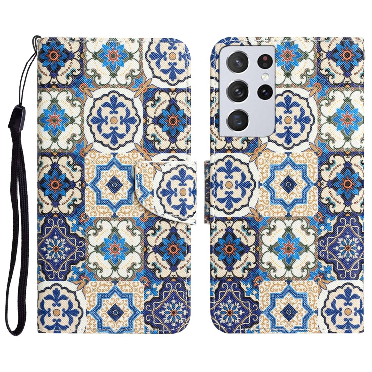 Para Samsung Galaxy S21 Ultra 5G Estuche para teléfono de cuero con dibujo coloreado (tótem vintage)